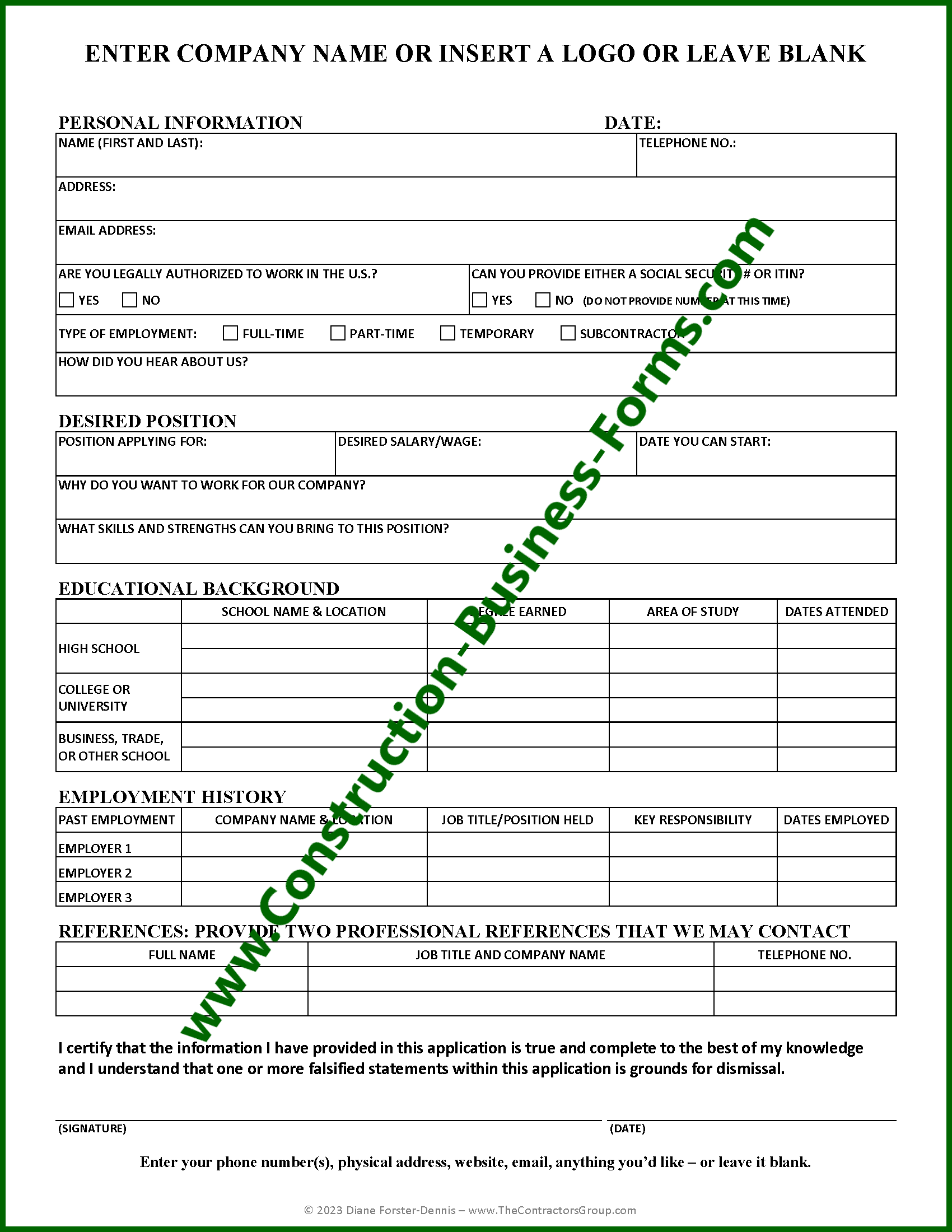 - 1) Job Application Form, English, Microsoft WORD version, add your logo and/or company info in text